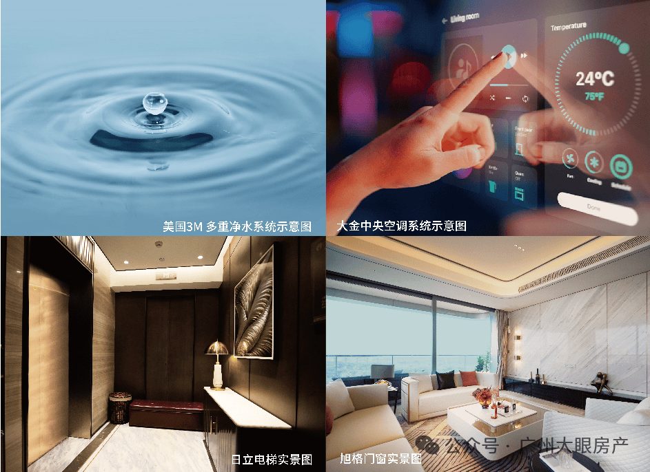 当智能科技结合现代居所,理想人居得以升华。采用国际一线品牌交付标准,引入美国3M多重净水系统、日立电梯、德国旭格门窗与大金中央空调系统