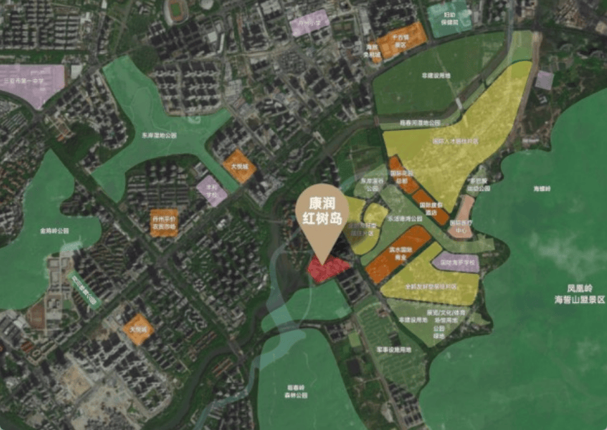 4.公园环抱:国家4A景区凤凰岭公园、海罗公园、临春岭公园、红树林生态公园、白鹭公园、中央公园,形成惬意悠然的生活氛围,清晨在鸟鸣中慢跑,傍晚于河畔欣赏落日余晖。