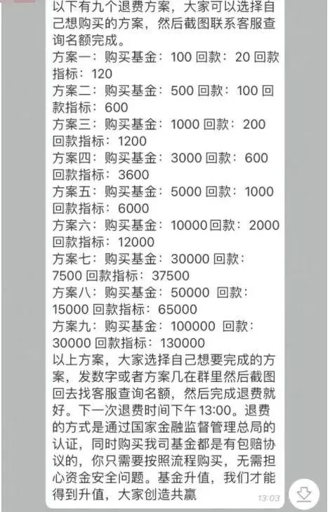 “客服”称,之前的公司被一家基金公司收购了,所以现在提供的退款渠道只能通过购买基金增值的方式进行,并且还发送了伪造的营业执照打消其顾虑。随后,将信将疑的朱先生就在客服的指导下下载了一款金融理财app,并根据回款方案购买了基金。