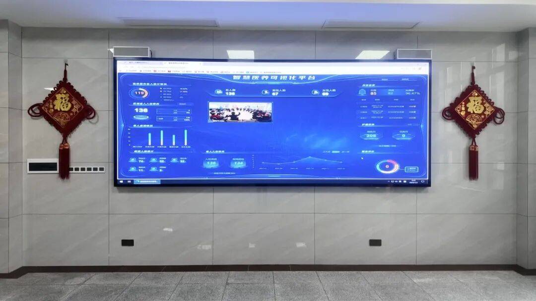 在医养中心一楼大厅,智慧医养综合管理平台的大屏格外醒目,老人入住人数、健康数据、护理记录等各类信息实时跳动。办公区内,工作人员紧盯屏幕,细致查看当日老人的各项动态情况。