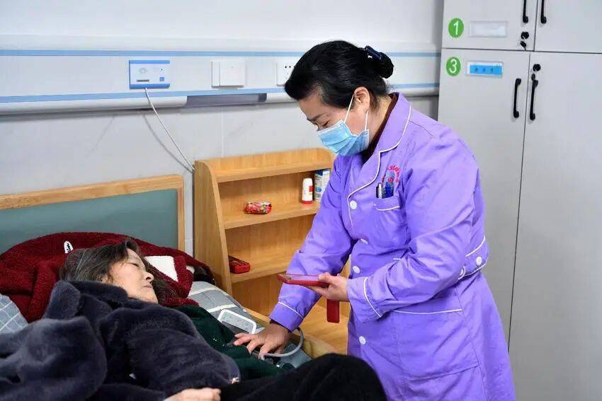 上午9时,保康县医养中心暖意融融,各项照护工作有序开展。阳光透过窗户洒进房间,护理员姜秀兰娴熟地操作电动护理床,协助失能老人翻身侧卧。