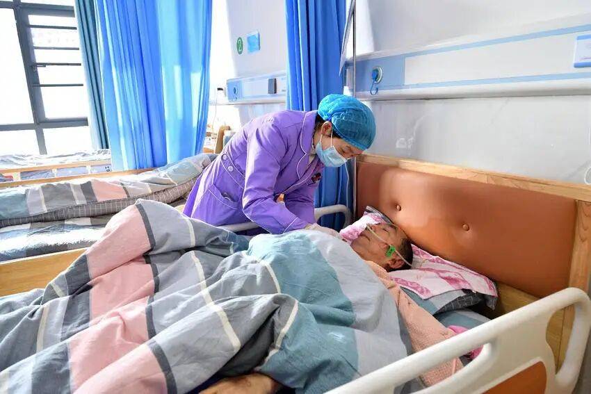 “这位老人行动不便,需要协助翻身。比如现在往右侧翻,每两小时翻一次身,这样既能让她舒服些,也减轻了我们的护理负担。”在姜秀兰的贴心护理下,老人僵硬的肢体逐渐舒展,脸上露出了舒适的神情。