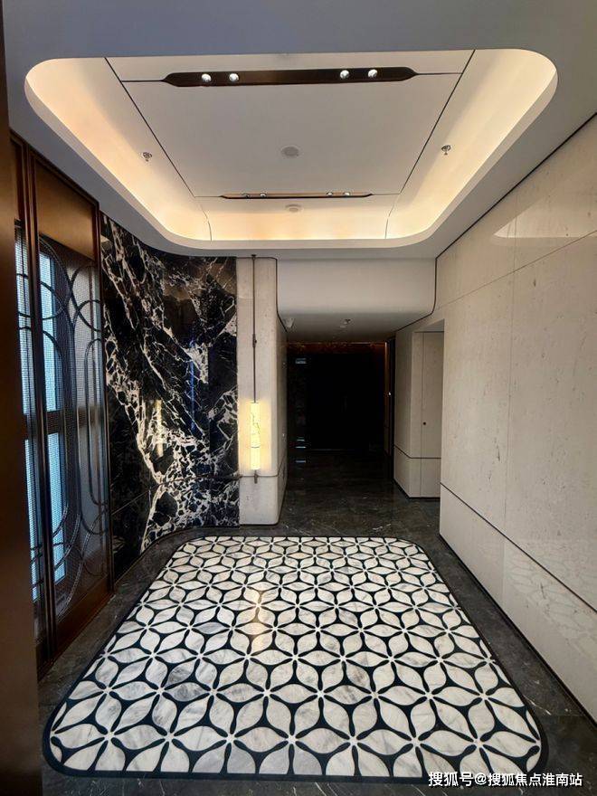 获得业主的一致好评。推门而入就是私属礼宾前厅,以艺术馆般的归家序厅赢得青睐。挑高的天花以极简金属造型线条勾勒出开阔的视野,