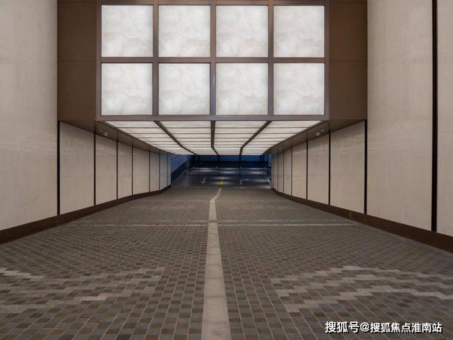 往里走,入口坡道的顶面,以纤细的金属线条勾勒出秩序的骨架,内嵌的透光云石玻璃,于细节处营造上海高端小区车库范本。
