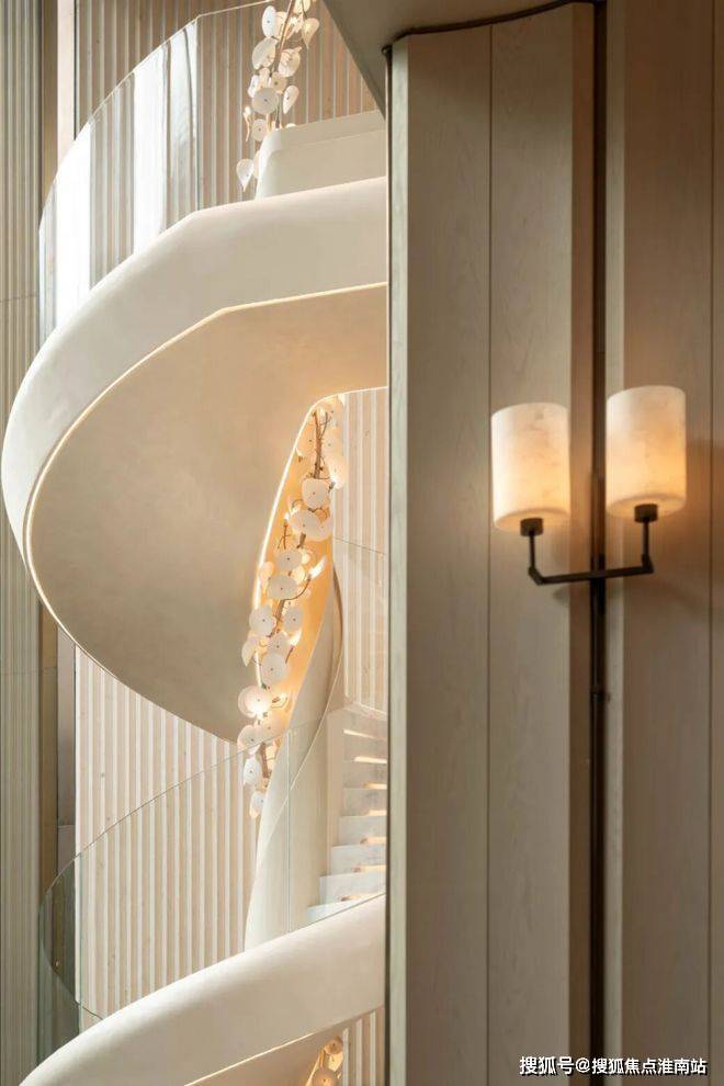两侧典雅的云石壁灯,不仅照亮了归途,更以沉静的光晕抚平喧嚣,让业主整个归家路上充满仪式感。