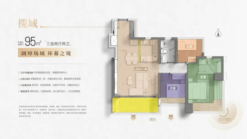主卧套房设计是这个户型的亮点之一。270°环幕飘窗,不仅提供了极佳的观景视野,更是一个私密的休闲空间。清晨,您可以在这里迎接第一缕阳光;夜晚,可以仰望星空,放松身心。主卧内还配备了独立卫生间,保证了主人的私密性和便利性。次卧和儿童房虽然面积适中,但通过定制家具和收纳设计,同样可以满足居住需求。LDKG一体化客餐厨空间,是当下最流行的设计趋势。客厅、餐厅、厨房和阳台打通,形成了一个巨大的家庭核心区。家人在这里做饭、吃饭、聊天、玩耍,互动频繁,感情升温。U型厨房设计,遵循“洗 - 切 - 炒”的黄金动线,操作流畅,效率极高。滑轨门的设置,既可以在烹饪时关闭防止油烟扩散,又可以在平时打开增加空间的通透感。