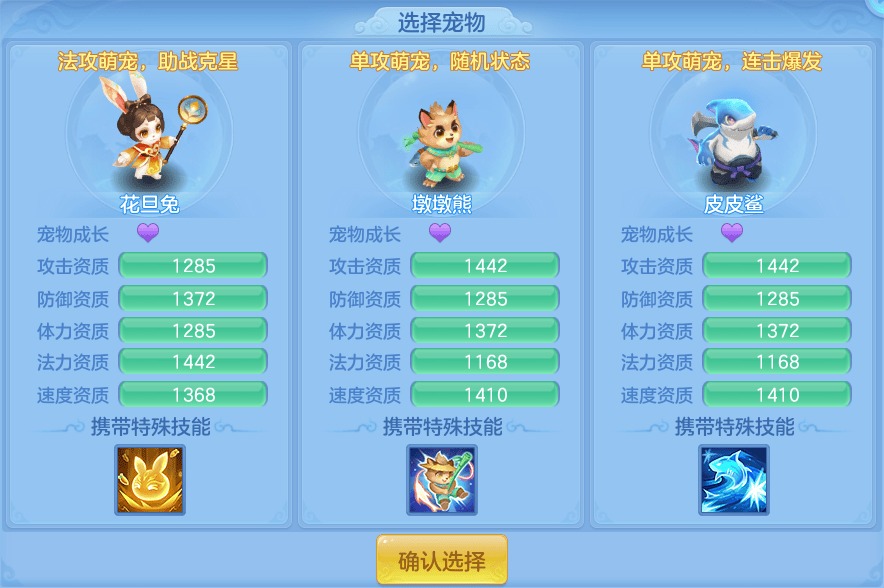 萌宠皮皮鲨、花旦兔、墩墩熊中任选其一领取!配套开放免费培养活动!三日领驰援宠:开服第3日花费少量还童丹,即可
