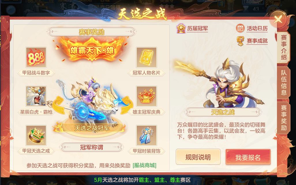 4)战队积分调整为战功,战功可通过参与帮派竞赛、帮派精英赛获取,战功上限由120点提高至150点。