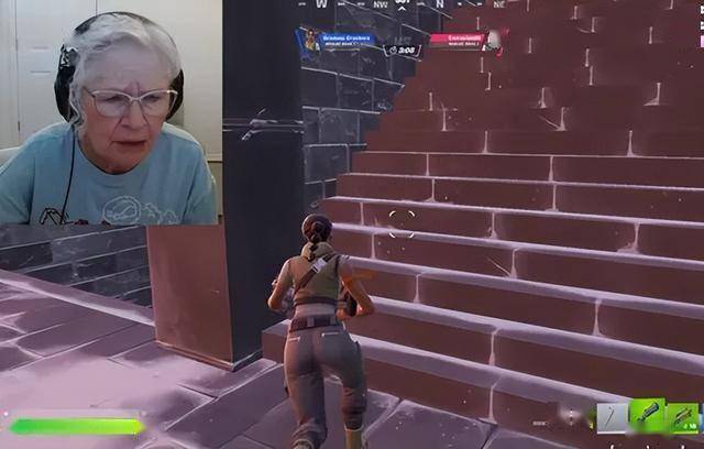 结果4年后,58岁的她在一场线上娱乐比赛中打出了名场面。她在墙角防守时,一枪带走了17岁的天才少年Donk。