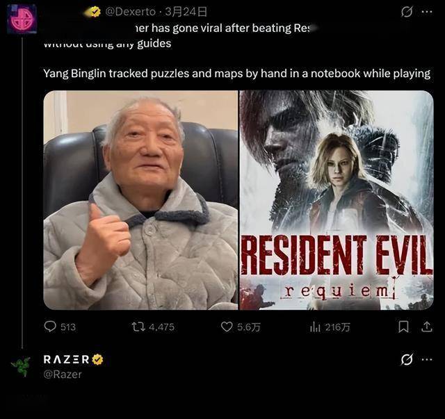 前阵子91岁的骨灰级玩家杨炳林老爷子不仅通关了《生化危机:安魂曲》,甚至还开了二周目。这游戏进度当时给不少网友都整不会了,我还没上车,您都开两个来回了。