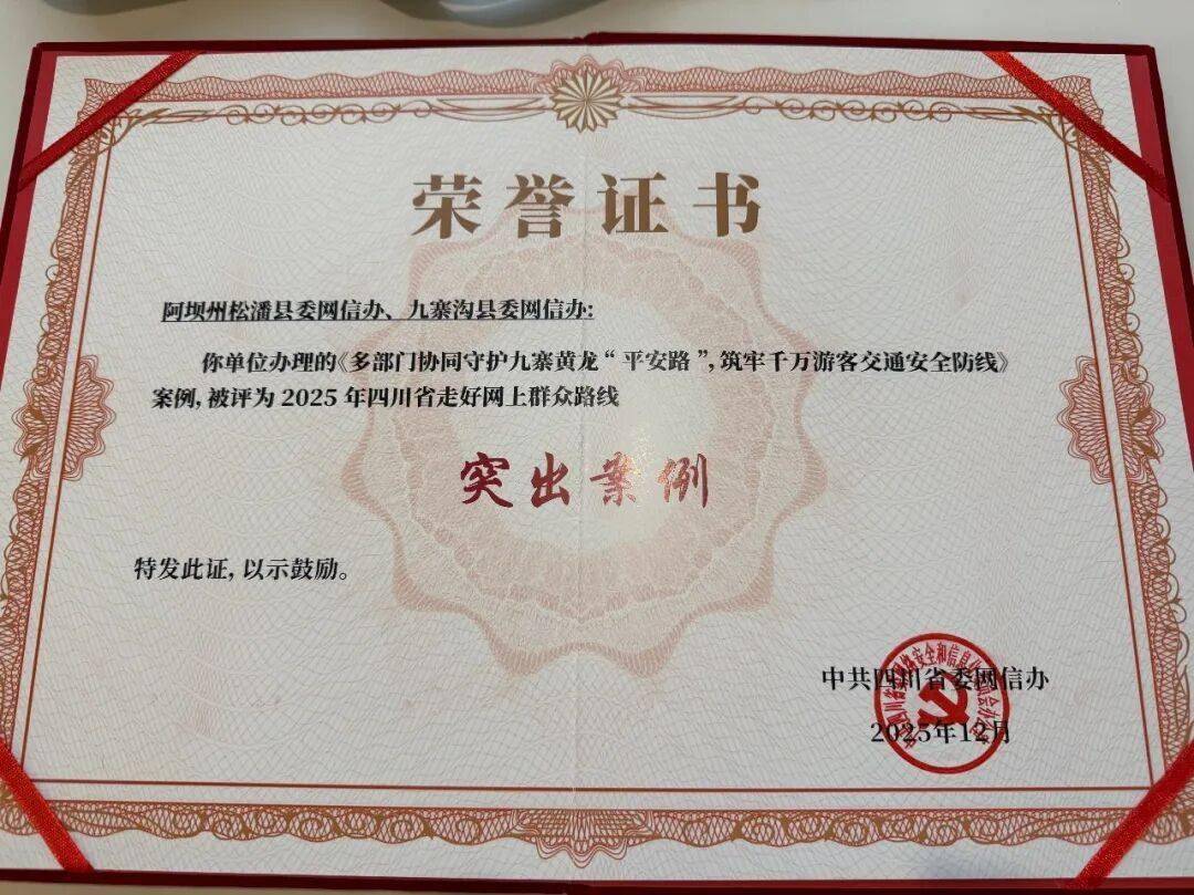 九寨沟县在此次评选中斩获两项殊荣——县委网信办报送的《多部门协同守护九寨黄龙“平安路”,筑牢千万游客交通安全防线年四川省走好网上群众路线突出案例;县融媒体中心运营的世界九寨APP,被评为2025年四川省走好网上群众路线突出融媒体中心网络平台。