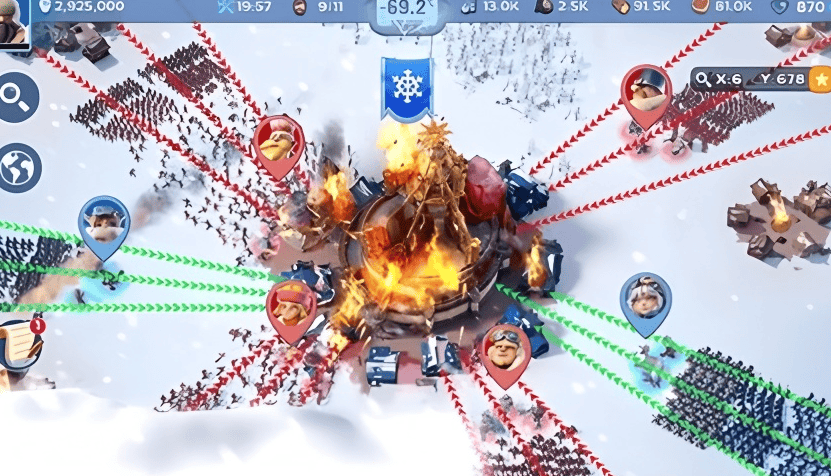 沉没成本的驱动,加上点点互动刻意简化的操作,玩到这里的玩家面对的并不是机制新颖,复杂,甚至有可能涉及策略的新生代 SLG。而是一个足够简单,只有点对点出兵,部队碰撞纯看数值的 SLG 玩法。