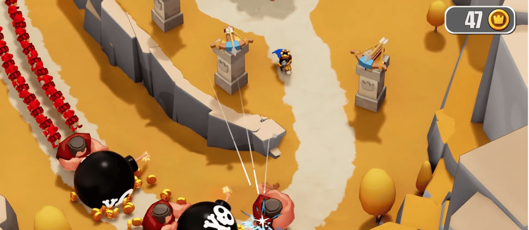 《奔奔王国》在塔防的基础上加入了模拟经营和卡牌构筑的要素,每一轮防守成功后就需要把收集的金币投入到工事建筑里。