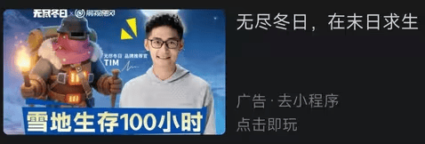 当然,最近让它热度再次翻红的,是它在bilibili的全新投放形式,它承包了tim的冬日生存直播冠名,并请来做代言,阵仗堪称铺天盖地,导致各种皮肤的tim都在涌现。