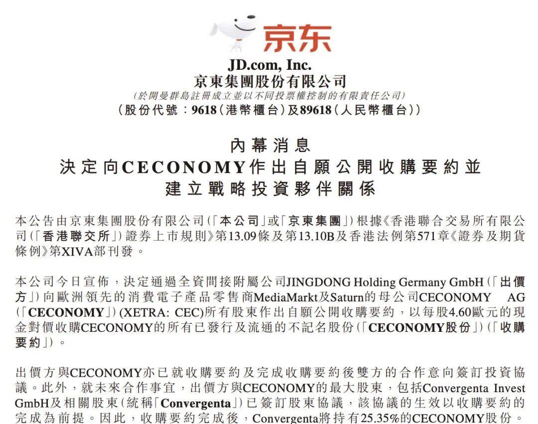 说这话时,他已经在布局:收购CECONOMY、欧洲平台JOYBUY于2026年3月正式上线。